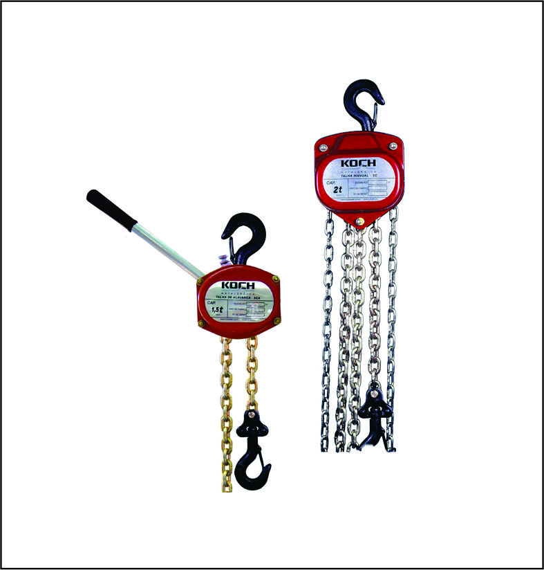 Acionamento por Alavanca e por Corrente – capacidade 650 kg a 10 ton.